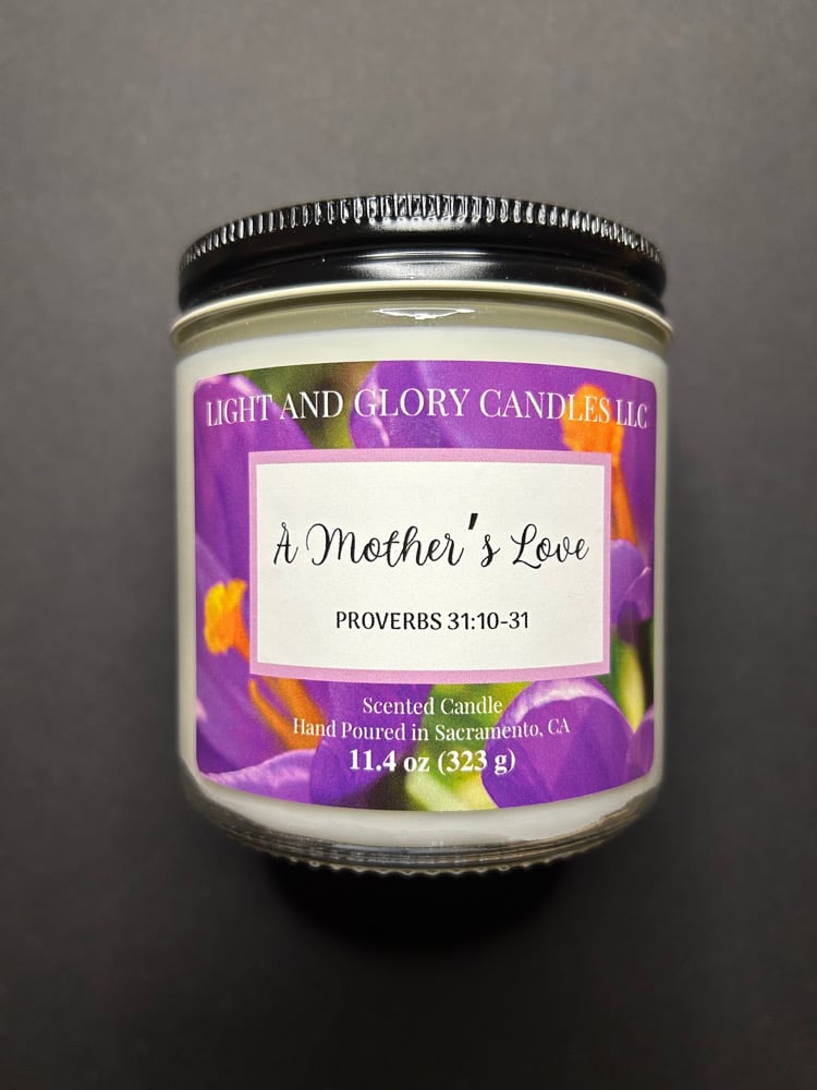 Our "A Mother’s Love" candle is based on the Bible passage Proverbs 31:10-31.