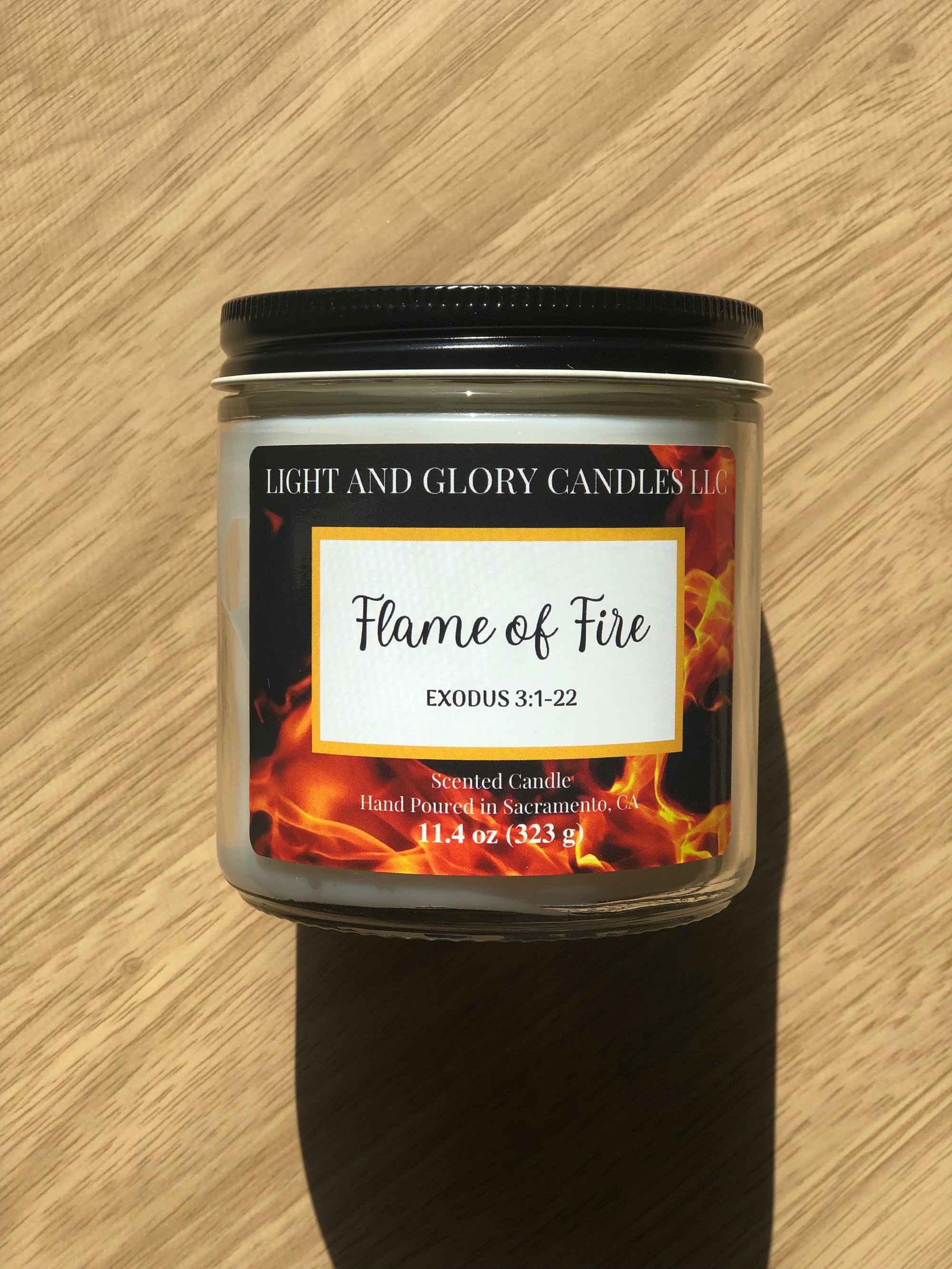 Our "Flame of Fire" candle is based on the Bible passage Exodus 3:1-22.